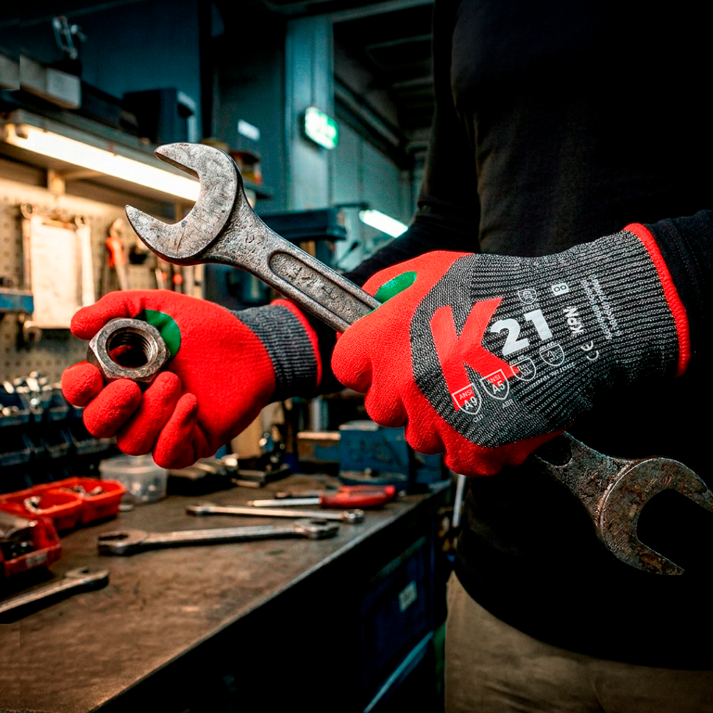 They feature a palm made of 4 layers of mixed fabrics, reinforced on the thumb with aramid stitching for better protection against mechanical and abrasive hazards.